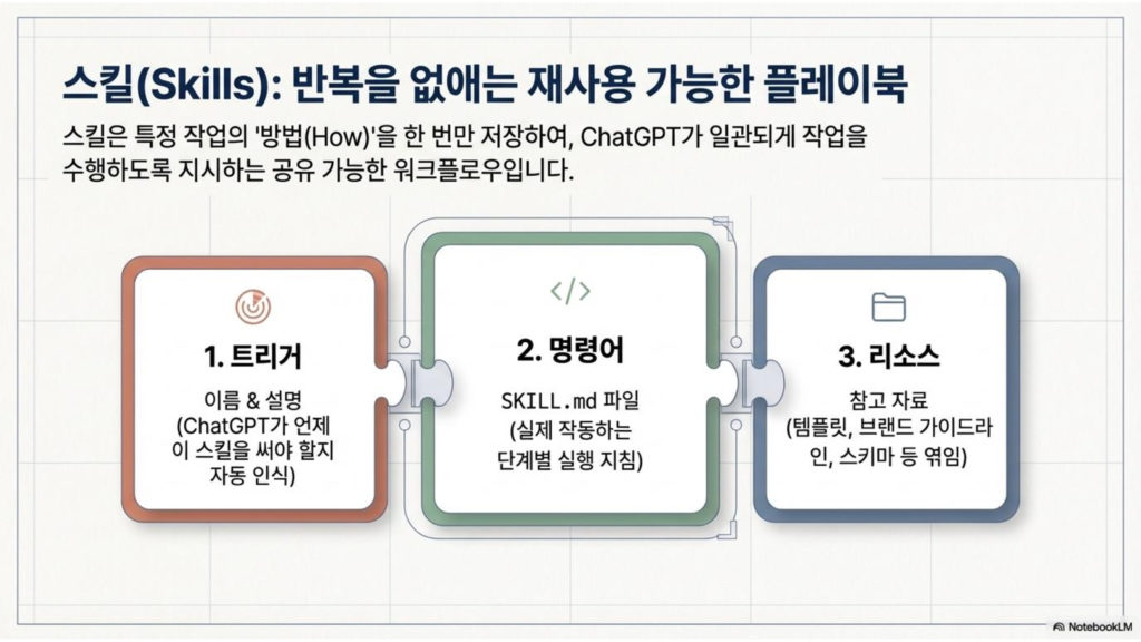 그래서 등장한 게 바로 ChatGPT 스킬(Skills)이에요.