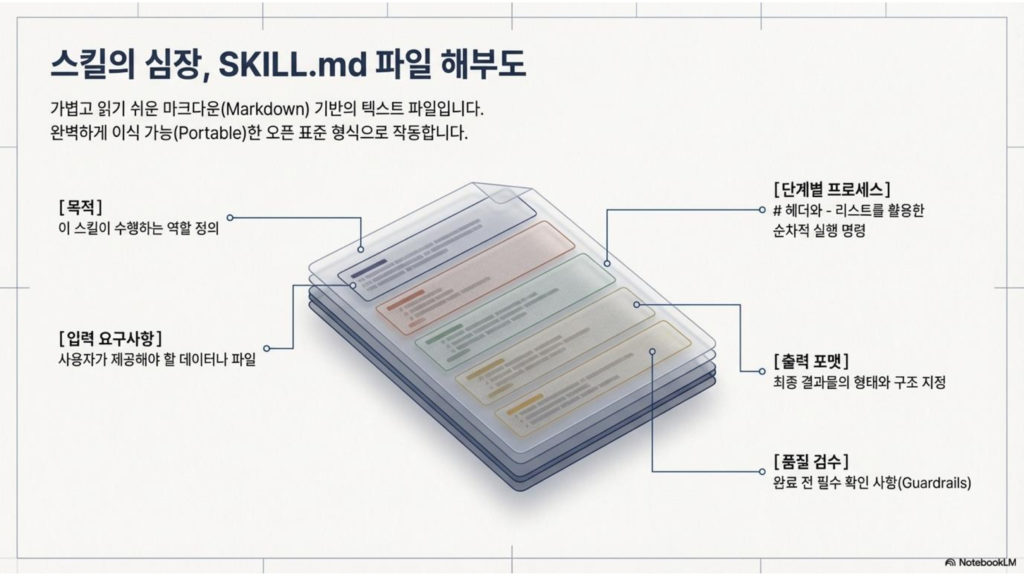 스킬의 핵심은 SKILL.md 파일 하나에 담겨 있어요.