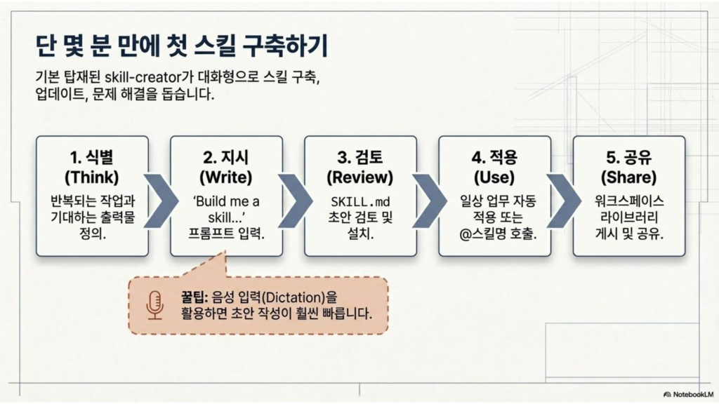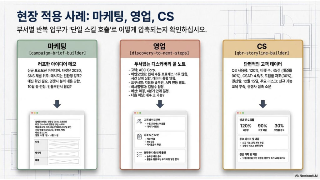 스킬은 결국 AI를 업무 흐름에 연결하고 자동화하는 사고가 있어야 제대로 설계할 수 있어요.