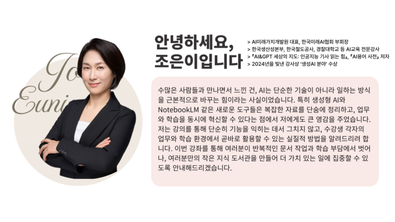 출처 기반의 정확한 답변과 콘텐츠 제작을 동시에 경험하는, 올인원 노트북LM 활용 강의입니다.