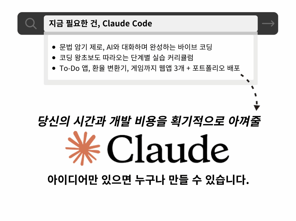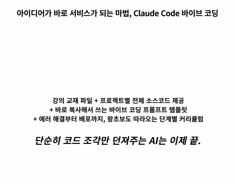 개발자 없이 내 아이디어를 직접 웹앱으로 만들고 세상에 공개하는, Claude Code 실전 강의입니다.