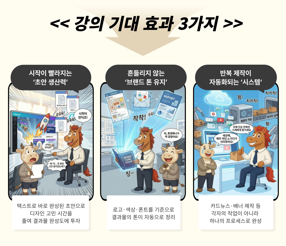 카드뉴스·배너·홍보물처럼 반복 제작이 많은 업무를 데이터 기반으로 한 번에 처리하는 노하우 학습