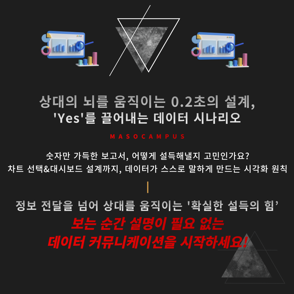 데이터 시각화는 차트를 그리는 디자인 작업을 넘어, 상대를 이해시키고 판단과 행동으로 이어지게 만드는 ‘데이터 기반의 커뮤니케이션 기술’입니다.