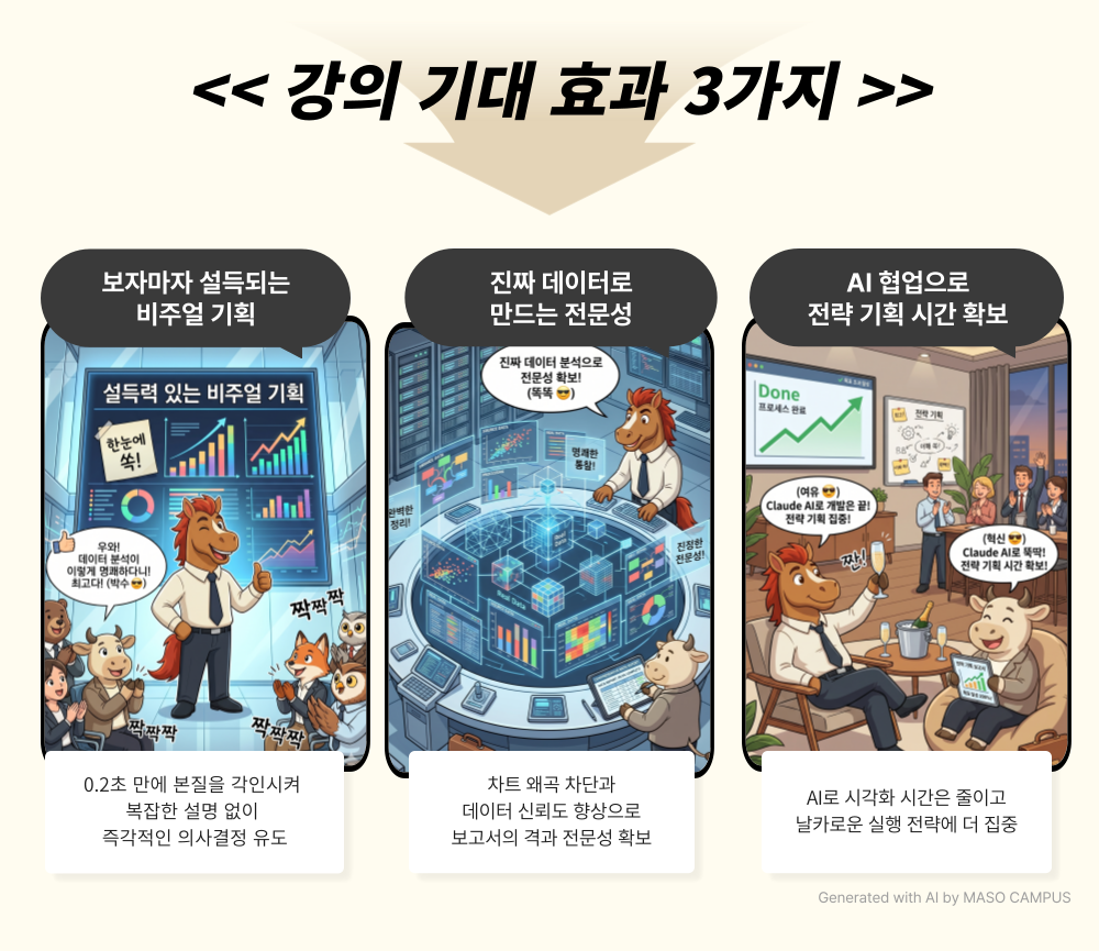 AI가 설계한 엑셀 차트로 프레젠테이션 설득력 극대화 커리큘럼 특징