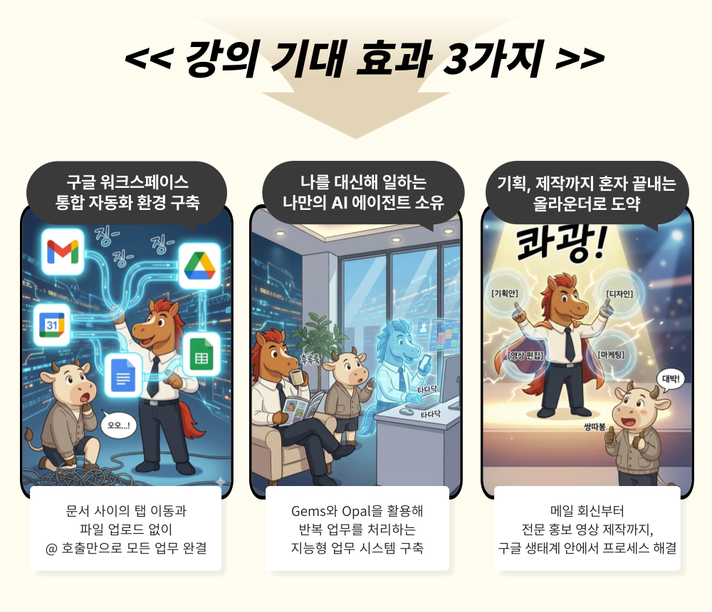 Gmail, Drive, 문서 도구에 Gemini라는 더해 업무의 경계를 허무는 통합 활용 강의입니다.