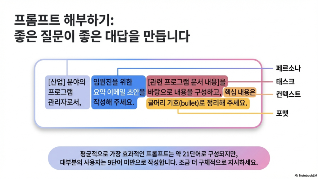 실제로 효과적인 프롬프트는 평균 약 21단어.