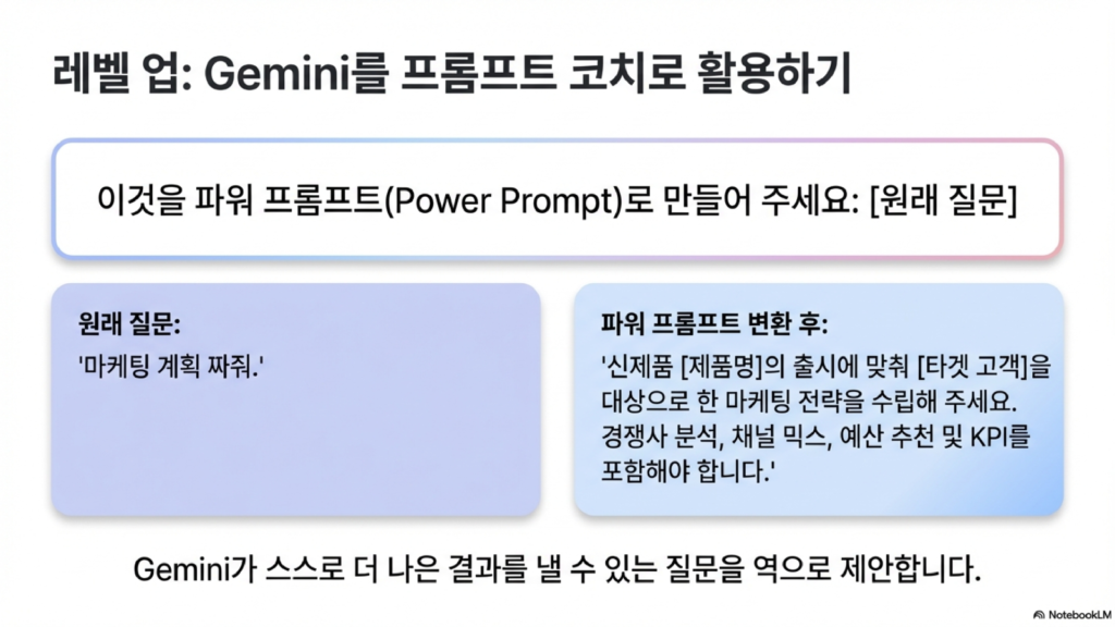 “이걸 파워 프롬프트로 바꿔줘”라고 요청해보세요 💪