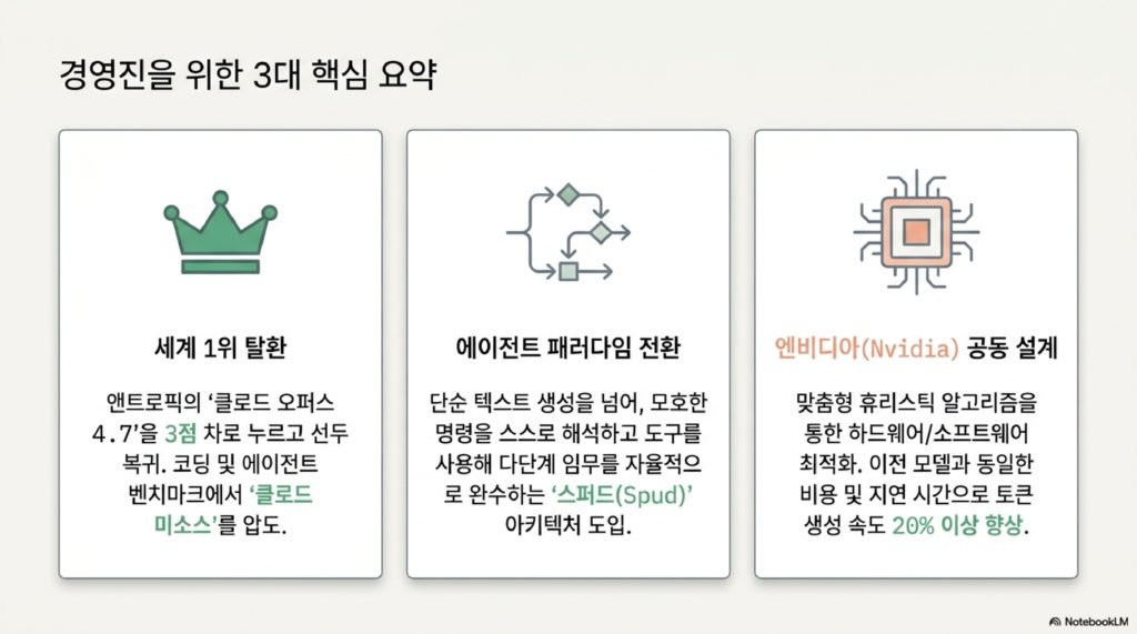 둘째, 명령어를 스스로 해석해 다단계 작업을 완수하는 Spud 아키텍처가 도입됐고요.