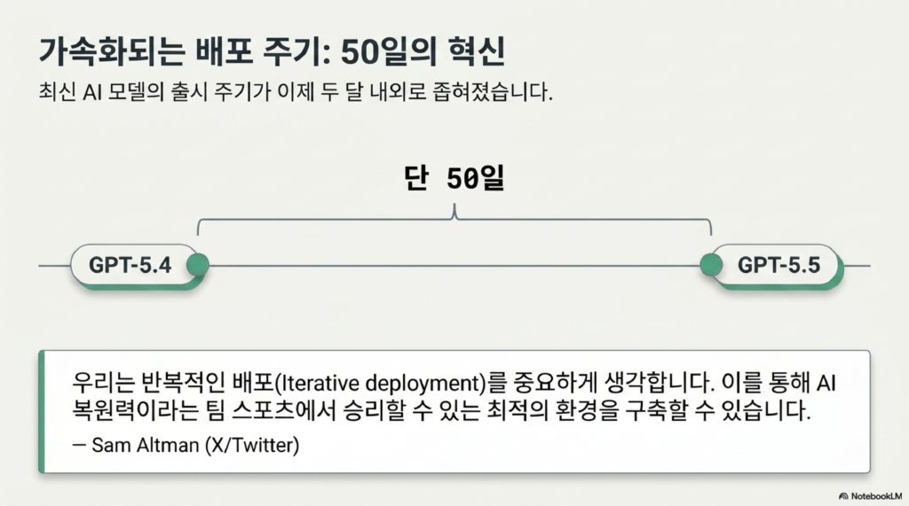 GPT-5.4에서 GPT-5.5까지, 간격은 단 50일이었어요.