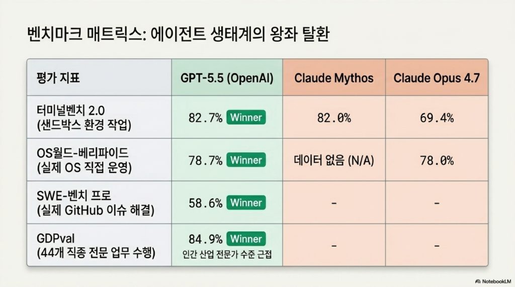 GPT-5.5가 모든 영역에서 앞선 건 아니에요.